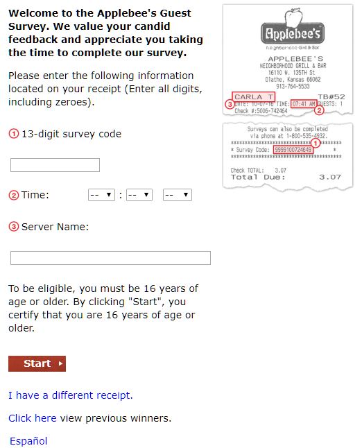 TalkToApplebees.com® – Official Applebee’s Survey – Steps